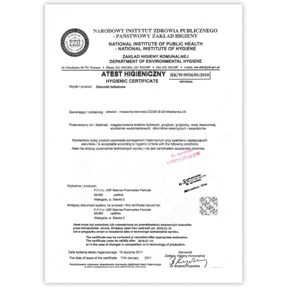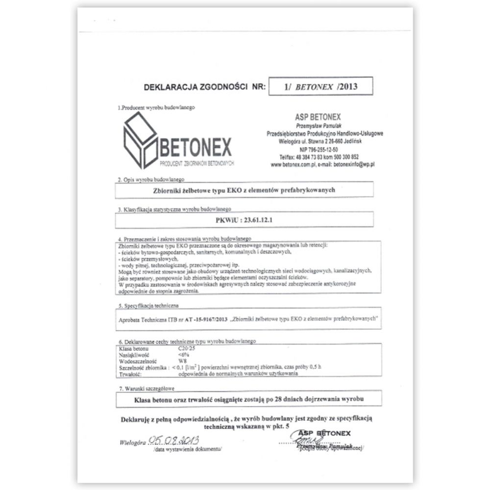 Bardzo ważnym czynnikiem nad, którym trzeba się zastanowić przy zakupie szamba betonowego jest informacja od producenta czy posiada on komplet dokumentów legalizujących pochodzenie i przeznaczenie zbiornika betonowego dzięki, którym użytkowanie go będzie całkowicie bezpieczne i bezproblemowe z punktu widzenia nadzoru budowlanego